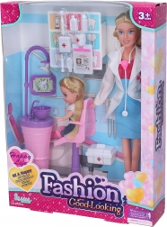 Le coffret comprend une poupée dentiste, une petite poupée fille et des accessoires, dont l’équipement du cabinet dentaire et des fournitures médicales. Grâce aux détails soignés et à sa taille de 29 cm, l’ensemble tient bien en main et se combine aisément avec d’autres compléments.