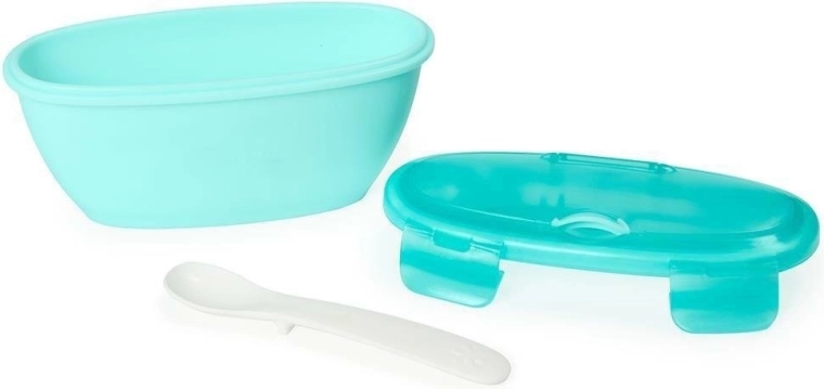 Ce kit de repas pour enfants pratique de la marque Skip Hop offre confort et sécurité pour les repas en déplacement. Le bol de 240 ml est muni de graduations en unités impériales et métriques, ce qui aide à un dosage précis. Le matériau convient au congélateur, au micro-ondes (sans le couvercle) et au lave-vaisselle (panier supérieur uniquement), offrant une grande flexibilité pour le stockage et le réchauffage des aliments. Le produit est destiné aux enfants dès 3 mois et ne contient ni BPA ni phtalates.