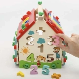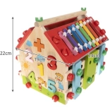 Maison en bois pour enfants est un jouet multifonctionnel et éducatif conçu pour développer les capacités motrices et cognitives des enfants. Il comprend diverses activités, dont un xylophone et des boîtes à formes, garantissant un excellent divertissement.