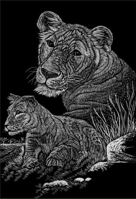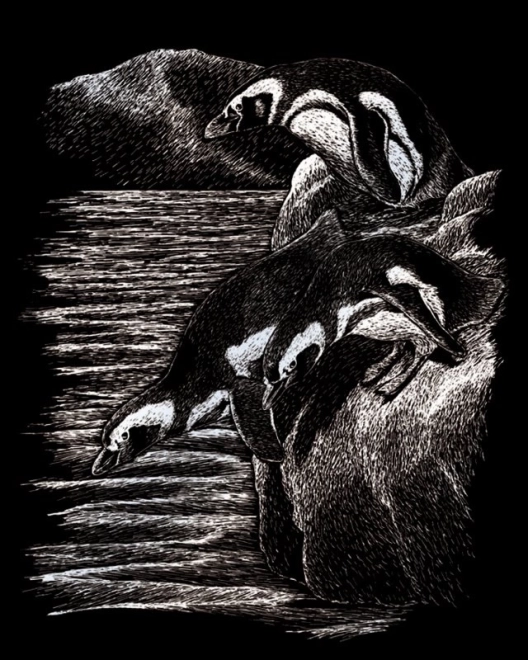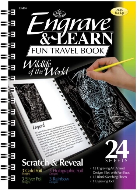 Découvrez la magie des images à gratter, populaires à travers les générations. À l'aide du stylo à gratter en plastique fourni avec une pointe en métal, grattez les lignes de l'image imprimée et révélez sous la couche noire un fond doré, argenté, arc-en-ciel ou holographique. Chaque œuvre picturale est unique et garantit des heures de plaisir.