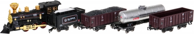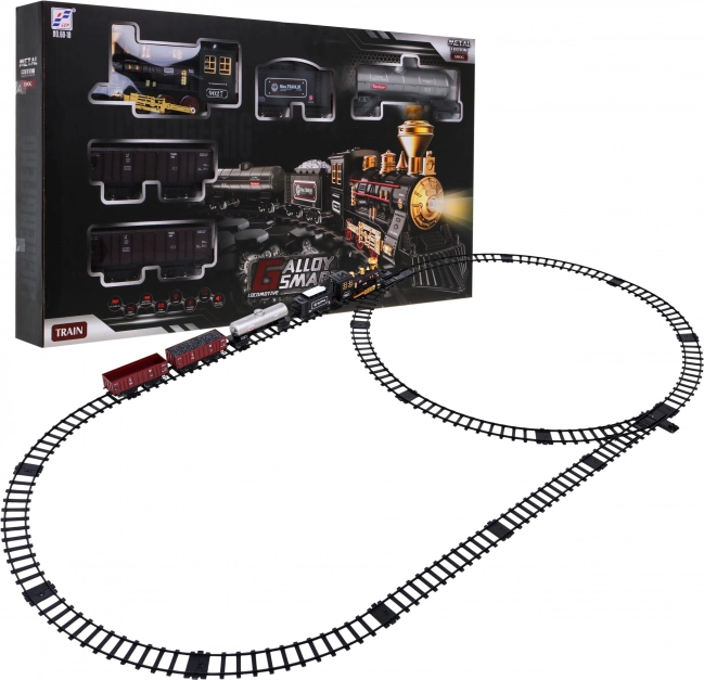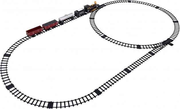 Cet ensemble de train propose une voie elliptique avec des dimensions d'environ 213 cm sur 106 cm. Lors du déplacement, la locomotive dégage de la fumée de la cheminée après remplissage avec de l'eau (la pipette est incluse dans l'emballage) et le phare avant s'allume. Connexion facile de la voie assure une utilisation sûre et durable. L'ensemble comprend :