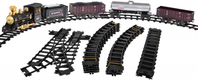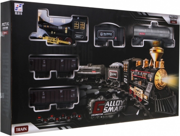 Incroyable ensemble de train avec fonction de fumée et sons de conduite réalistes destiné aux enfants à partir de 5 ans. L'ensemble est alimenté par une batterie rechargeable de 3,7V incluse dans l'emballage.