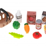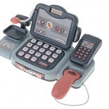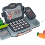 En plus de la caisse, le set est équipé d'une balance, d'un lecteur de cartes, d'un scanner de codes-barres, d'un microphone, de cartes colorées, d'argent liquide, d'un panier et d'imitations d'aliments comme des boissons, des légumes, et plus encore.