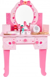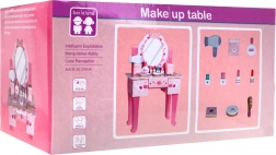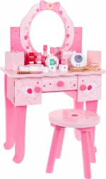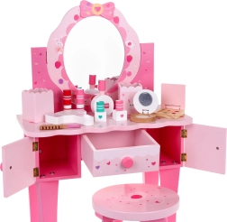 Cette magnifique coiffeuse en bois est le rêve de chaque petite princesse. Avec un design élégant et une construction stable, ce miroir à la mode offre un espace pour tous les accessoires cosmétiques importants. Comprend un tabouret pour s'asseoir confortablement et des tiroirs à ouvrir pour ranger de petits trésors. Fabriqué en bois non toxique avec des peintures à base d'eau.