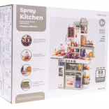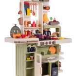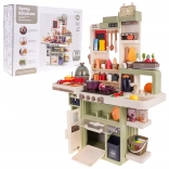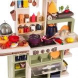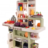 La cuisine offre des effets lumineux et sonores avec de l'eau qui coule et de la vapeur, permettant aux enfants de jouer de manière réaliste.