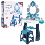 Les dimensions de la coiffeuse sont de 51 cm x 74,5 cm x 24,5 cm. Toutes les pièces sont fabriquées en plastique de qualité, sécurisé et facile à nettoyer.
