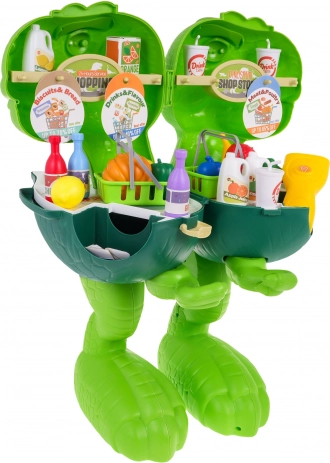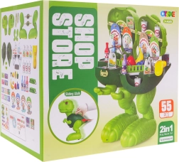 Le dinosaure sert de boîte de rangement pour tous les mini-aliments et accessoires de boutique, garantissant de l’ordre après le jeu.