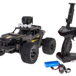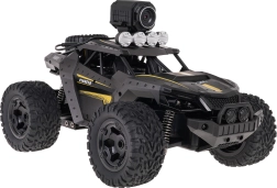 La radiocommande 2,4 GHz offre une conduite fluide sans interférences, avec réglage fin de la direction (trim). La caméra HD intégrée permet de réaliser des prises de vue d’action pendant la conduite; avec le support de téléphone sur la commande, visualisez confortablement l’image via l’application mobile (QR code de téléchargement inclus). Les phares LED avant améliorent la visibilité et apportent un look réaliste.