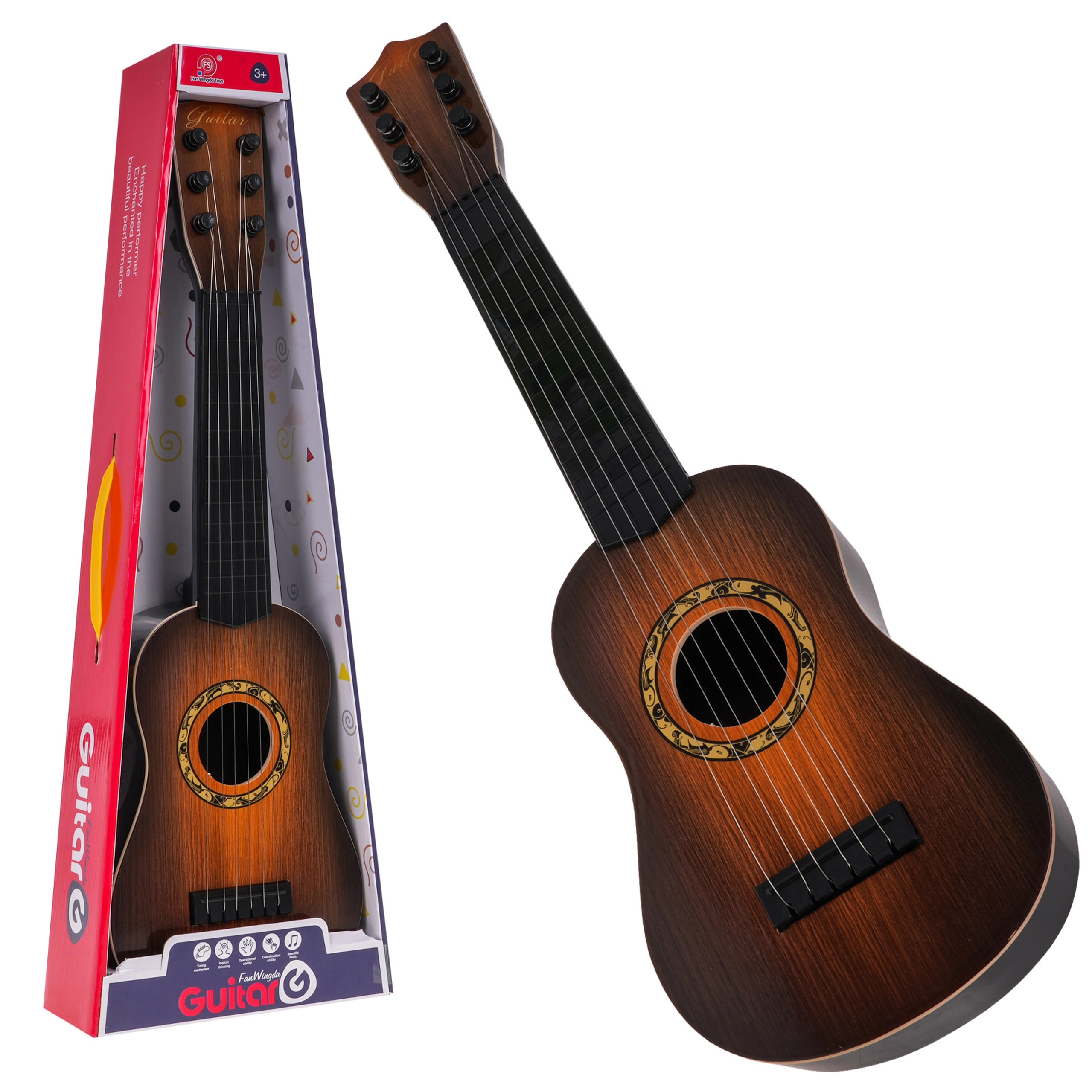 Cette guitare classique pour enfants en coloris marron foncé reproduit fidèlement un véritable instrument. Elle possède six cordes métalliques et des mécaniques fonctionnelles pour un accordage de base, offrant une sensation de jeu authentique et stimulant le développement du rythme et de l’oreille musicale.