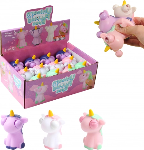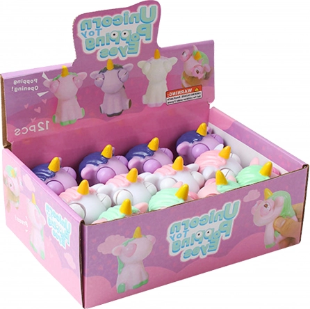 Adorable licorne antistress 8 cm pour soulager le stress. Trois couleurs, matière douce, display box de 12 pièces. Idéale comme cadeau pour enfants et adultes.