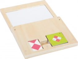 Ce jeu fascinant offre aux enfants une manière ludique et interactive d'apprendre à reconnaître et créer des motifs et formes symétriques. En plaçant les plaquettes en bois devant le miroir, les enfants créent des motifs qui forment ensemble le schéma souhaité selon les cartes incluses.