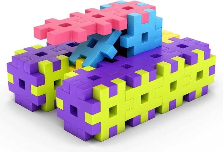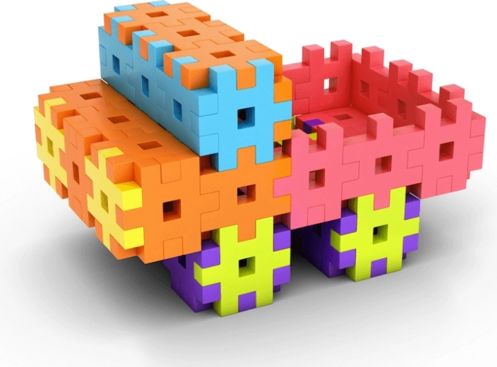Une quantité suffisante d’éléments colorés et faciles à saisir pour construire des modèles variés et créer à plusieurs en même temps – idéal pour les maternelles et les ateliers.