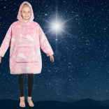 La couverture chaude pour enfants avec capuche est parfaite pour les soirées fraîches, que ce soit à la maison devant la télévision, près du feu ou sur la terrasse. Une grande poche pratique permet de ranger de petits objets ou de réchauffer les mains. Elle possède des éléments fluorescents qui en font un accessoire amusant dans la garde-robe des enfants.