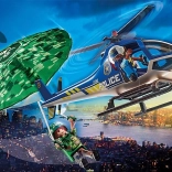 Ne manquez pas la poursuite excitante avec l'Hélicoptère de Police City Action, qui tente d'arrêter un voleur audacieux en fuite avec un précieux trésor en or.