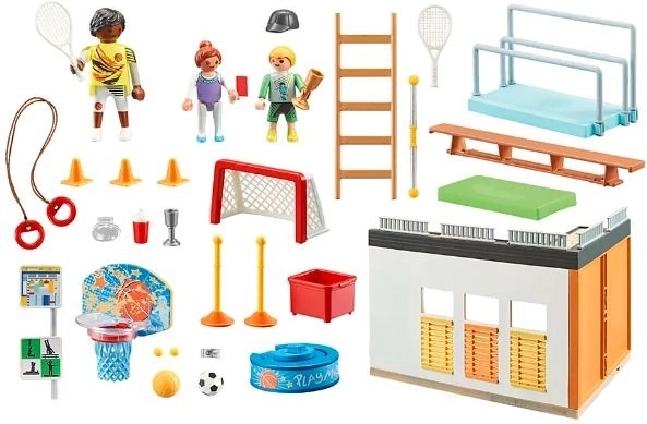 Ce set d’extension CITY LIFE apporte une authentique atmosphère sportive dans la chambre des enfants. Le gymnase comprend un cercle pour le basket, un équipement sportif varié ainsi que des supports et des étagères pour un rangement ordonné. Idéal pour les jeux créatifs, le développement de la motricité et les compétitions en équipe.