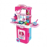 Voici l' Ensemble de cuisine enfant 3en1 qui vient dans une mallette compacte, idéale pour les petits chefs. Cet ensemble peut facilement se transformer en version table ou cuisine classique :