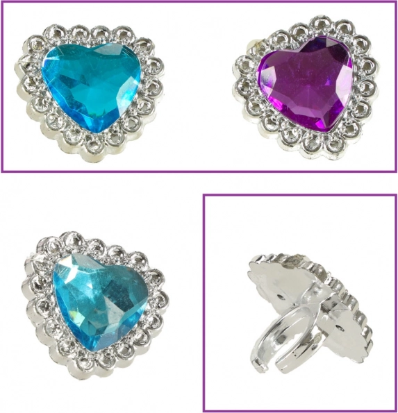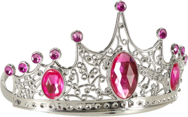 Une tiare argentée ornée de pierres roses, un collier assorti et des boucles d’oreilles apportent un éclat enchanteur à chaque tenue. Deux bagues complètent l’ensemble dans les moindres détails.