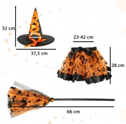 Tout ce dont une petite sorcière a besoin : chapeau pointu, tutu vaporeux et balai stylé dans un design assorti.