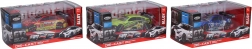Voiture de course en métal avec des dimensions de 11x4,5x3,2 cm offrant du divertissement avec un mécanisme à rétro-friction en trois variantes de couleurs - vert, rouge et bleu.