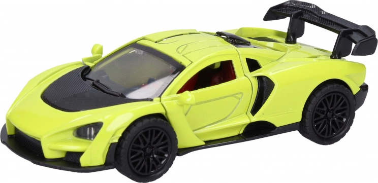 Voiture métallique Supersport 12 cm avec rétrofriction et portes ouvrantes en couleurs verte et orange.