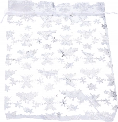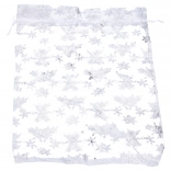 Créez une ambiance de Noël parfaite avec ce magnifique sac en organza à motif flocons. Son matériau translucide et ses motifs délicats apportent une touche d'élégance à l'emballage des cadeaux.