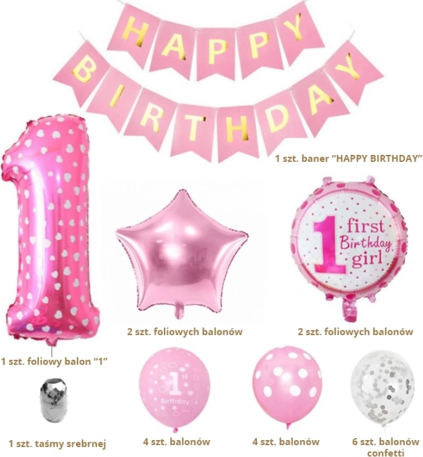 Ensemble de ballons d’anniversaire rose - 1 an