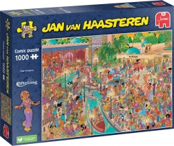 Profitez d’heures de divertissement avec les puzzles JUMBO de qualité de la collection Jan van Haasteren. L’illustration « Efteling Fata Morgana » apporte l’humour typique, une multitude de petites scènes et des motifs cachés comme l’ailette de requin, les mains errantes ou le portrait de Haasteren. Avec ses 1000 pièces et son dessin coloré et détaillé, l’assemblage captive toute la famille.