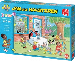 Entrez dans un monde de gags et de couleurs avec ce puzzle JUMBO de la collection Jan van Haasteren Junior. Chaque pièce mène à de nouvelles découvertes amusantes, de l’iconique nageoire de requin aux petits personnages discrets et aux situations surprenantes. Le thème Magicien apporte une scène dynamique et divertissante qui ravira enfants et adultes.