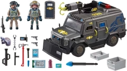Ce véhicule tout-terrain de l’unité spéciale est le rêve de tout petit policier. Aucun bandit ne s’échappe grâce à la suspension intégrale qui maîtrise même les terrains les plus difficiles. Si la route est bloquée, la lame à l’avant vient à la rescousse. Le toit ainsi que les portes latérales et arrière sont ouvrants, ce qui facilite l’installation des figurines à l’intérieur.