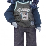 La poupée se vante d'une tenue sportive originale avec un maillot de basket stylé et le numéro '19', soulignant son sens de la mode.