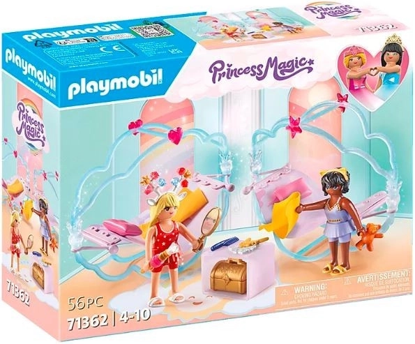 Vivez des aventures avec les princesses arc-en-ciel lors de la pyjama party céleste PLAYMOBIL. Avant que les deux princesses arc-en-ciel ne s’installent dans leurs lits magiques suspendus, elles se parent de bijoux scintillants, puis voyagent vers un monde de rêves et d’imagination peuplé de personnages féeriques et d’environnements magiques.