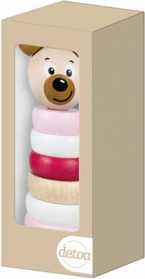 La pyramide en bois avec tête d’ours, aux couleurs pastel, est plus qu’un simple jouet — c’est un outil de développement pour les enfants. Elle est fabriquée en bois massif, ce qui garantit sa résistance et sa longue durabilité. Elle se compose de huit pièces qui aident les enfants à apprendre les couleurs et les formes. Elle présente un design ergonomique avec des formes circulaires et des bords arrondis, adapté aux petites mains et stimulant le toucher.