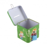 Grâce aux personnages dessinés et aux couleurs vives, la tirelire se distingue dans toute chambre d’enfant.