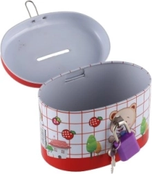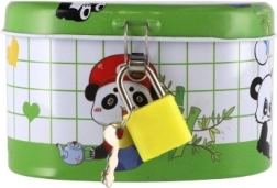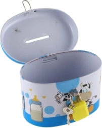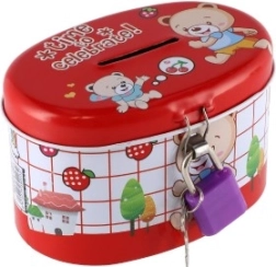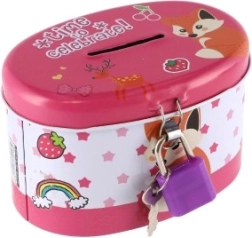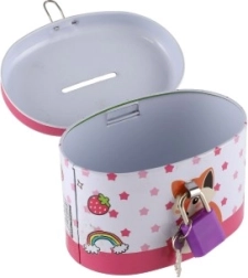 La tirelire idéale pour les enfants, qui allie sécurité et amusement. Fabriquée en métal résistant et dotée d’un petit cadenas, elle assure que l’argent reste en sécurité. Le couvercle est orné d’illustrations joyeuses qui plairont à tous les petits épargnants :