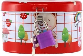 Tirelire en métal pour enfants avec cadenas. Design joyeux et conservation sécurisée de l’argent. Cadeau idéal.