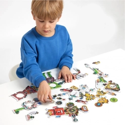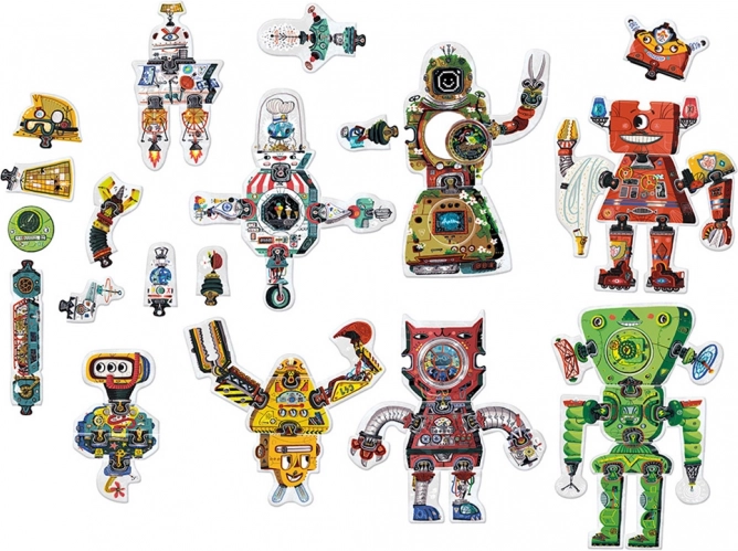 Découvrez un puzzle créatif sur le thème des robots, composé de 63 pièces en carton rigide, dont 28 recto verso. Les pièces peuvent être combinées librement, permettant aux enfants d’assembler jusqu’à 8 grands robots, puis de modifier à l’infini leur apparence et leurs fonctions. Le jeu développe la motricité fine, la pensée logique, la créativité et la patience – un divertissement idéal pour les enfants d’âge préscolaire intéressés par la technologie et les inventions.
