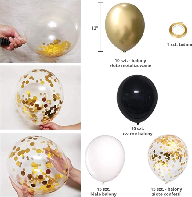 Set de ballons dorés et noirs 50 pcs