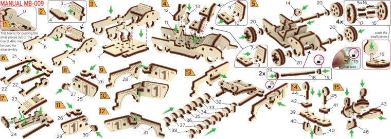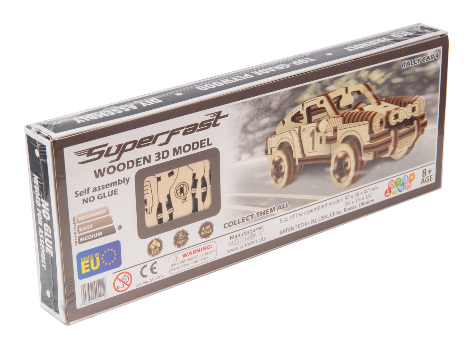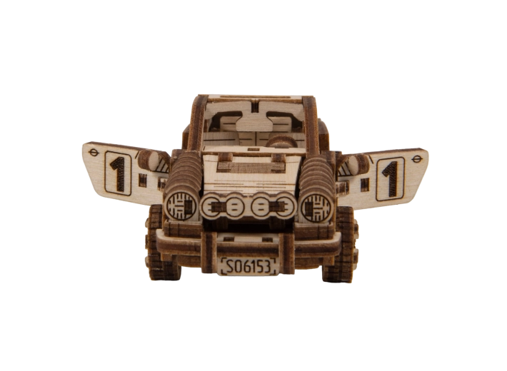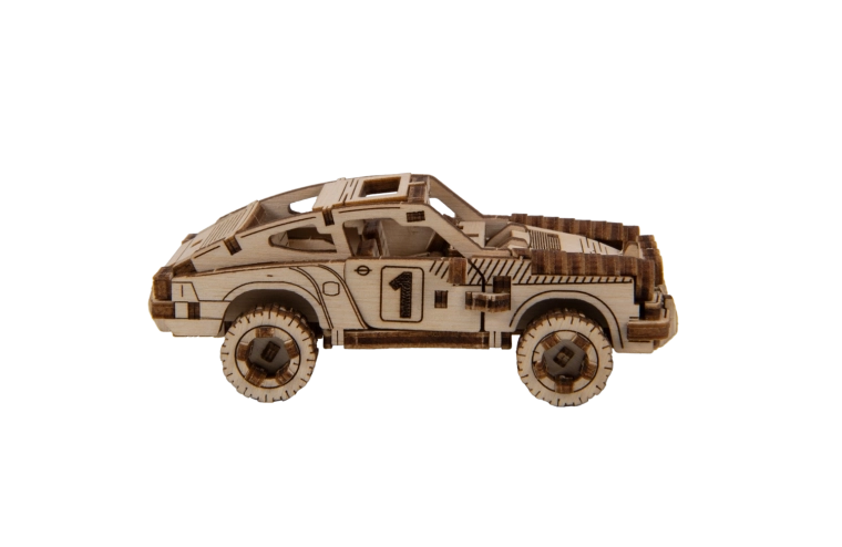 Les pièces finement découpées en contreplaqué de bouleau s’emboîtent avec précision. L’assemblage prend environ 40 minutes et il est accessible grâce à une difficulté facile. Inspiré par l’univers du sport automobile, il ravira les enfants en âge scolaire comme les adultes passionnés.
