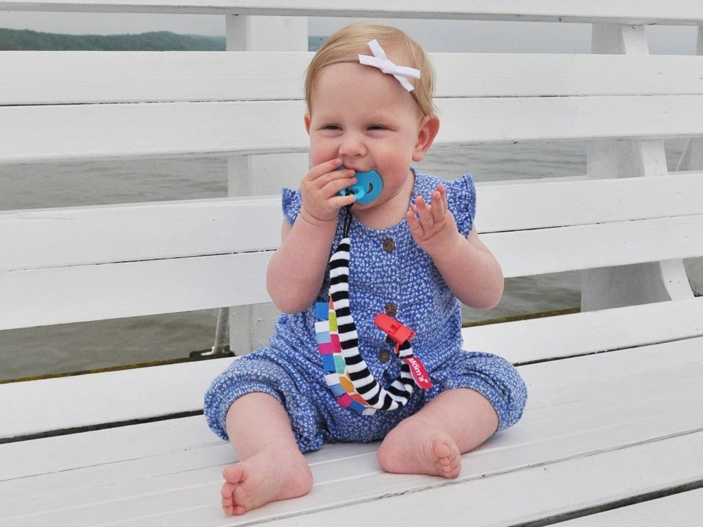 Le clip résistant tient fermement sur les vêtements et la sangle textile garde la tétine toujours à proximité – à la maison comme en déplacement.