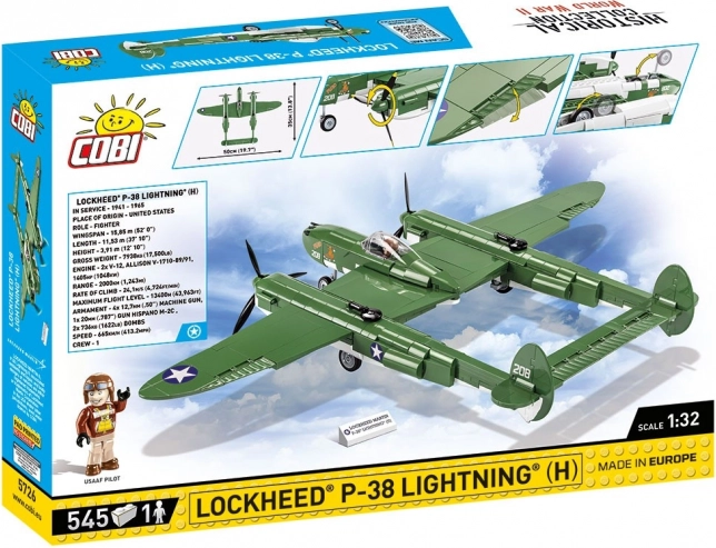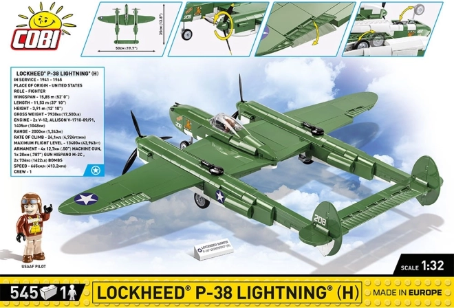 Construisez le légendaire chasseur américain de la Seconde Guerre mondiale – LOCKHEED P‑38 LIGHTNING à l’échelle 1:32 par COBI. Le set comprend 545 pièces, des impressions détaillées sans autocollants, des éléments mobiles (hélices, volets, train d’atterrissage) et une cabine ouvrante avec figurine de pilote. La licence officielle LOCKHEED MARTIN garantit une reproduction fidèle de l’iconique « cadre volant ».