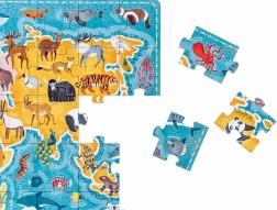 Entrez dans un monde de merveilles et d'inspiration avec les puzzles Puzzlove CzuCzu Animaux Carte du monde. Ce magnifique puzzle, composé de 60 pièces, présente non seulement des continents et des océans, mais aussi les animaux fascinants qui peuplent différents coins de notre planète. Parfait pour les enfants qui aiment les animaux et souhaitent en apprendre plus et vivre des aventures.