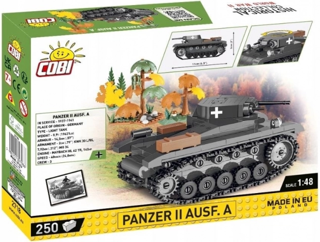 Plongez dans l’expérience du modélisme avec ce kit du char Panzerkampfwagen II, machine clé de l’armée allemande au début de la Seconde Guerre mondiale. Grâce à la nouvelle échelle 1:48, le modèle est idéal pour les débutants comme pour les fans des kits COBI. L’emballage comprend des accessoires du monde des briques, apportant une nouvelle dimension au plaisir de construire. Une conception extrêmement précise et la haute qualité des impressions garantissent que le modèle reste impeccable même après des heures de jeu.