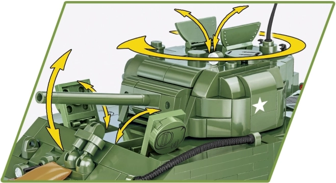 Le modèle en briques du Sherman est richement détaillé et inclut divers accessoires du char d’origine. Mention spéciale pour la figurine du chef de char, superbement réalisée. Le tank comporte également une plaque avec le nom imprimé.