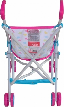 Adorable poussette pour poupées Milly Mally Julia Candy avec cadre métallique léger, conçue pour jouer au quotidien à la maison comme à l’extérieur. Elle offre une structure pliable type parapluie, des ceintures de sécurité et un verrou anti-pliage involontaire. Grâce à sa housse en polyester lavable et à ses roues en plastique résistantes, elle est idéale pour des poupées jusqu’à 50 cm et stimule l’imagination et le jeu d’imitation.