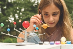 Les enfants assemblent un modèle des planètes et les personnalisent avec les peintures fournies. Une manière ludique de comprendre l’ordre et les tailles des planètes ainsi que les bases de l’astronomie.
