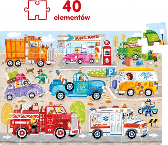 CzuCzu Moto puzzle Voitures : grand puzzle de 40 pièces pour enfants avec voitures et machines. Développe la motricité, l’attention et l’imagination. Excellent cadeau pour la maison, la maternelle et les voyages.