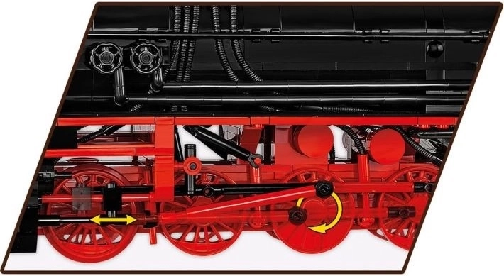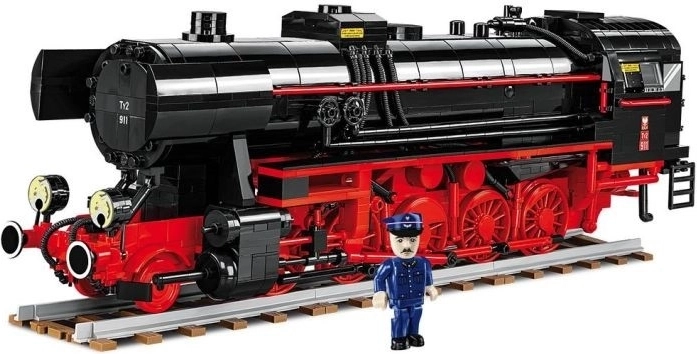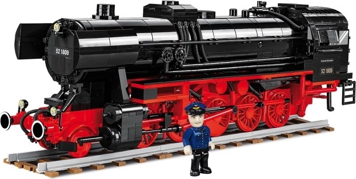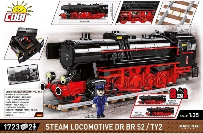 Le set avec un modèle en briques de la locomotive à vapeur allemande DR BR 52 / TY2 de la Seconde Guerre mondiale fait partie de la toute nouvelle collection Trains proposée par COBI. La boîte reproduit fidèlement la carrosserie, les proportions et les détails de la légendaire locomotive à vapeur, probablement la plus appréciée et la plus reconnaissable par tous les passionnés de chemins de fer dans le monde. L’édition spéciale 2 en 1 comprend deux ensembles différents de pièces supplémentaires permettant de construire soit la locomotive allemande DR BR 52 avec marquages allemands de la période de la Seconde Guerre mondiale, soit la locomotive avec marquages polonais des Chemins de fer de l’État polonais de la Pologne populaire d’après-guerre. Outre diverses briques avec symboles, numérotations et marquages imprimés différents, l’ensemble comprend également des lampes frontales et arrière retravaillées et plus grandes pour la version polonaise, des briques sélectionnées dans une palette de couleurs différente, ainsi que deux figurines distinctes : un conducteur allemand de l’époque de la Seconde Guerre mondiale et un conducteur polonais en uniforme d’après-guerre des PKP avec l’emblème national caractéristique — l’aigle polonais dont la couronne royale fut retirée par les communistes.