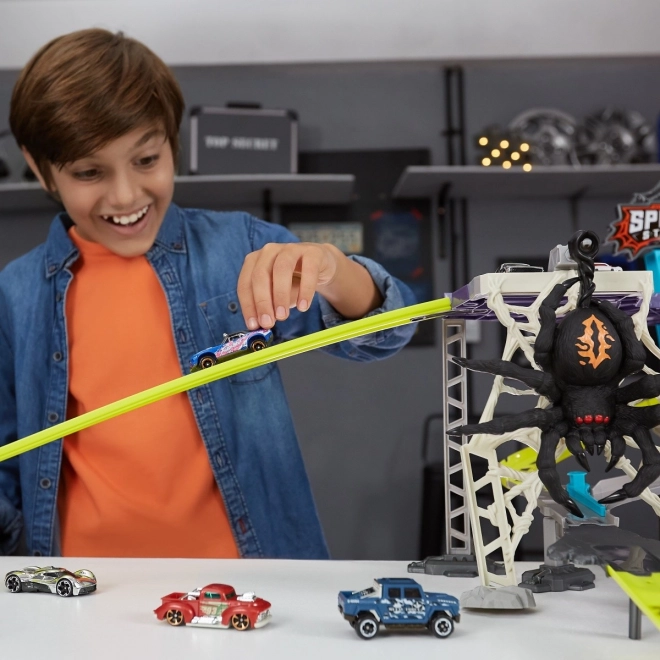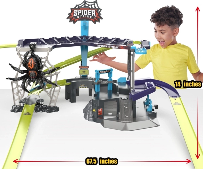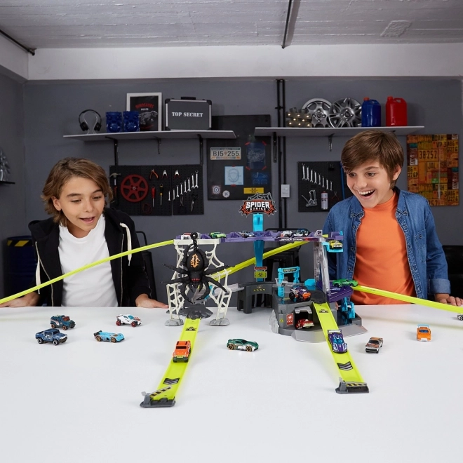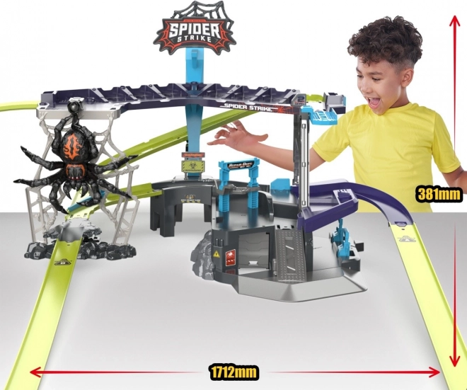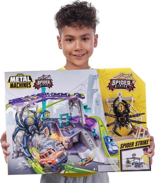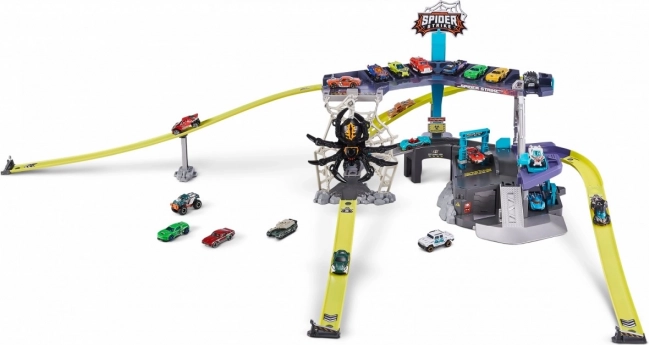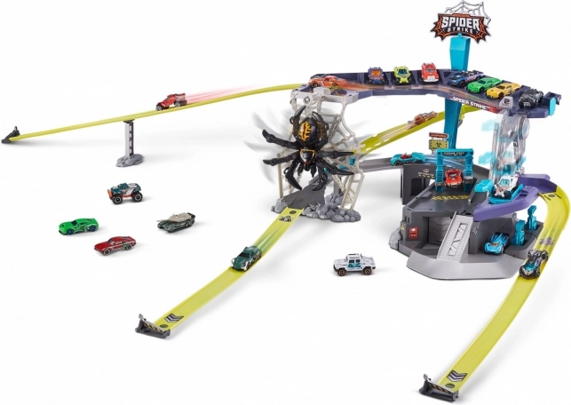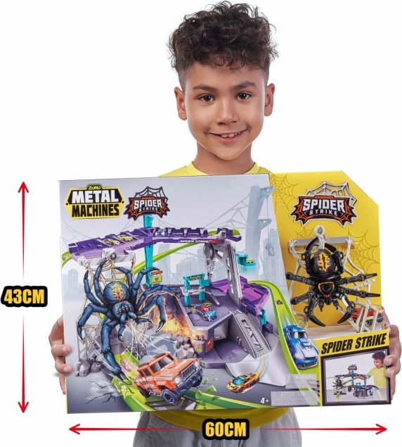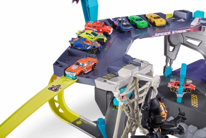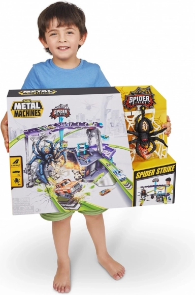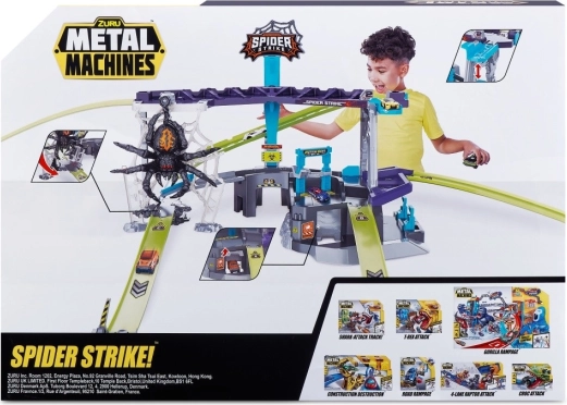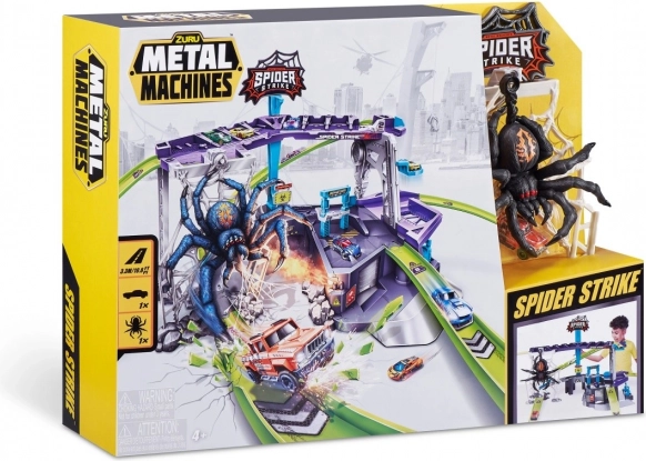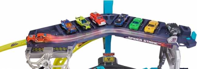 Entrez dans un monde d'aventures avec le formidable circuit de voitures ZURU Metal Machines : Attaque de l'Araignée. Ce set de jeu interactif élève le jeu à un niveau supérieur. Affrontez l'araignée qui se balance sur sa toile et, en tant que membre de l'équipe Metal Machines, surmontez-la !