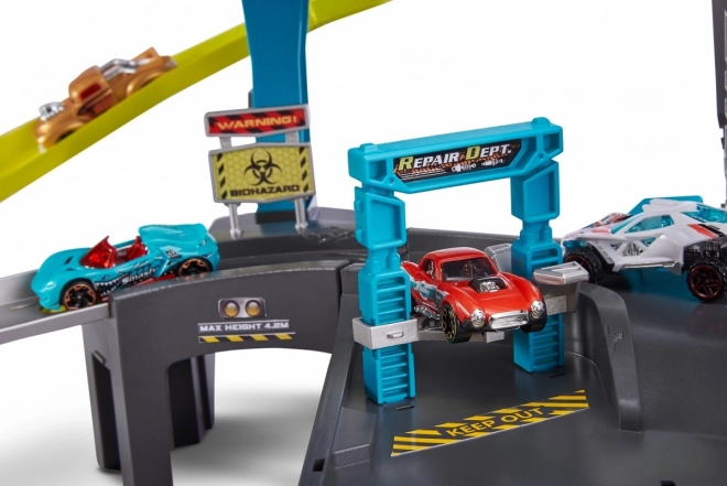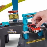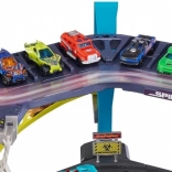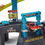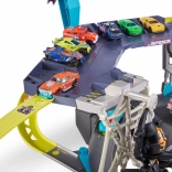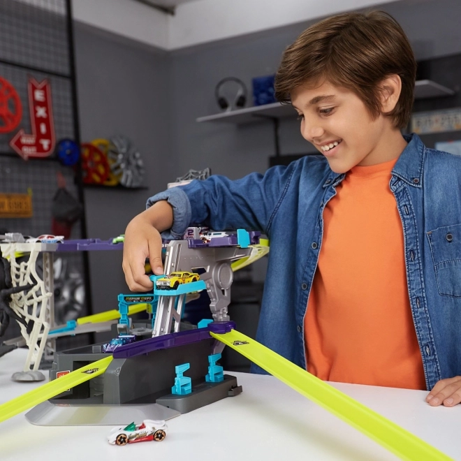 Comprend un circuit de course modulable mesurant jusqu'à 3,3 mètres avec une capacité de stationnement pour plus de 8 voitures. Un atelier de réparation et un garage sont également disponibles pour le rangement des véhicules. Les propriétaires peuvent profiter de moments de jeu inspirants en faisant balancer l'araignée et en créant des pistes uniques pour des expériences de conduite inoubliables.