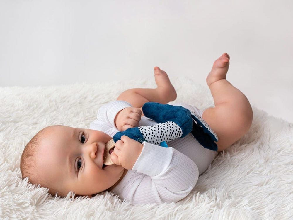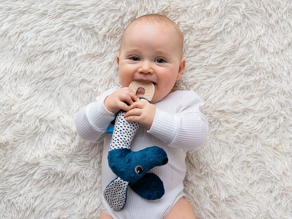 Le compagnon parfait pour la poussette, le lit et les déplacements – un seul jouet, de nombreuses fonctions : câliner, mordiller, presser, froisser et couiner pour la joie et le développement de votre bébé.